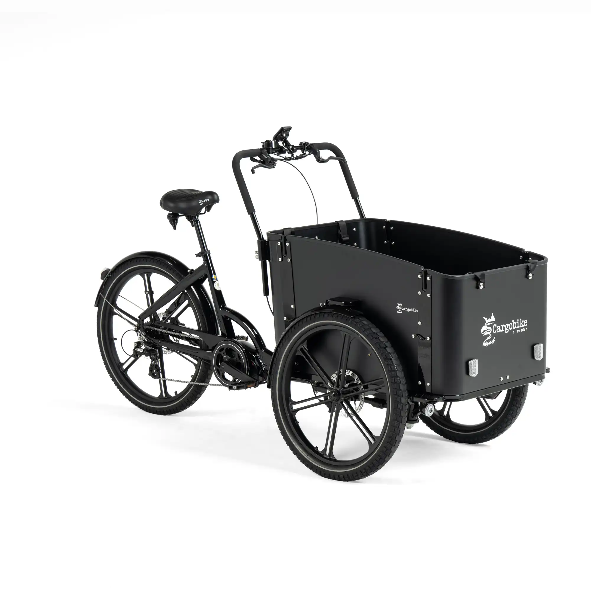 La cargo bike Delight di Cargobike of Sweden combina un box ampio, ruote in magnesio pressofuso e guida stabile per trasportare bambini e carico in cittร . Il telaio robusto e il motore centrale offrono assistenza fluida anche con carico, rendendola una soluzione ideale per famiglie e utilizzi quotidiani. La batteria ad alta capacitร  garantisce autonomia sufficiente per gli spostamenti di tutti i giorni, mentre i freni idraulici assicurano sicurezza e controllo in ogni situazione.