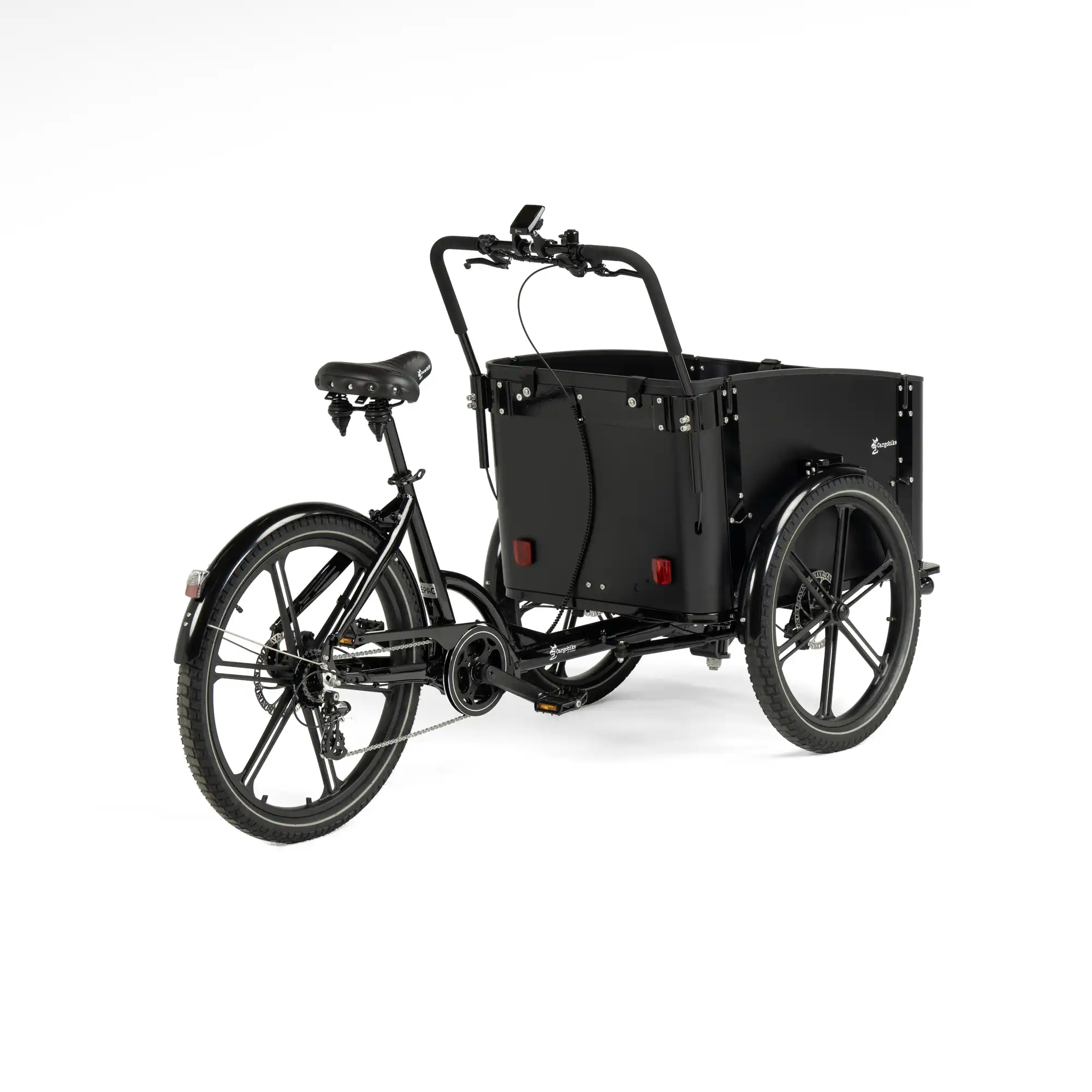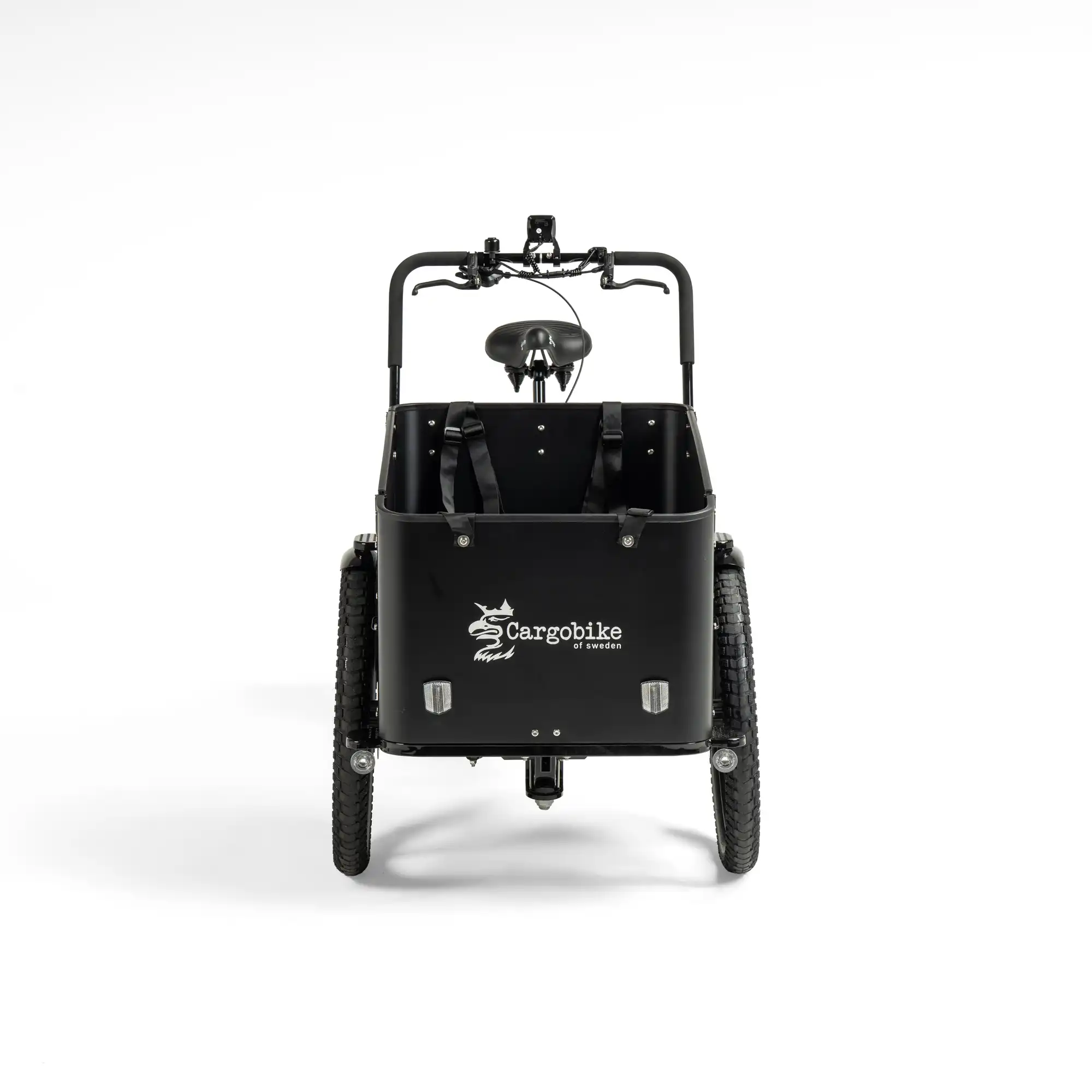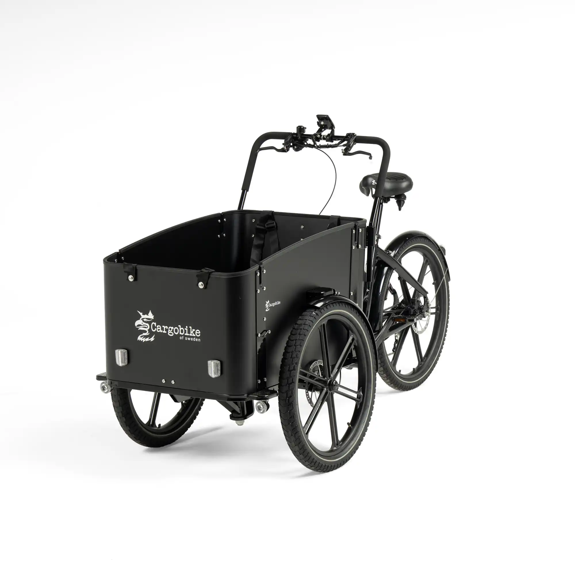 La cargo bike Delight di Cargobike of Sweden รจ progettata per offrire elevata versatilitร  nel trasporto bambini e carichi urbani. Il telaio robusto e il box ampio permettono una configurazione adatta a famiglie o trasporti leggeri. Il motore centrale potente garantisce assistenza fluida anche a pieno carico, e i freni a disco idraulici assicurano controllo e sicurezza in ogni situazione.